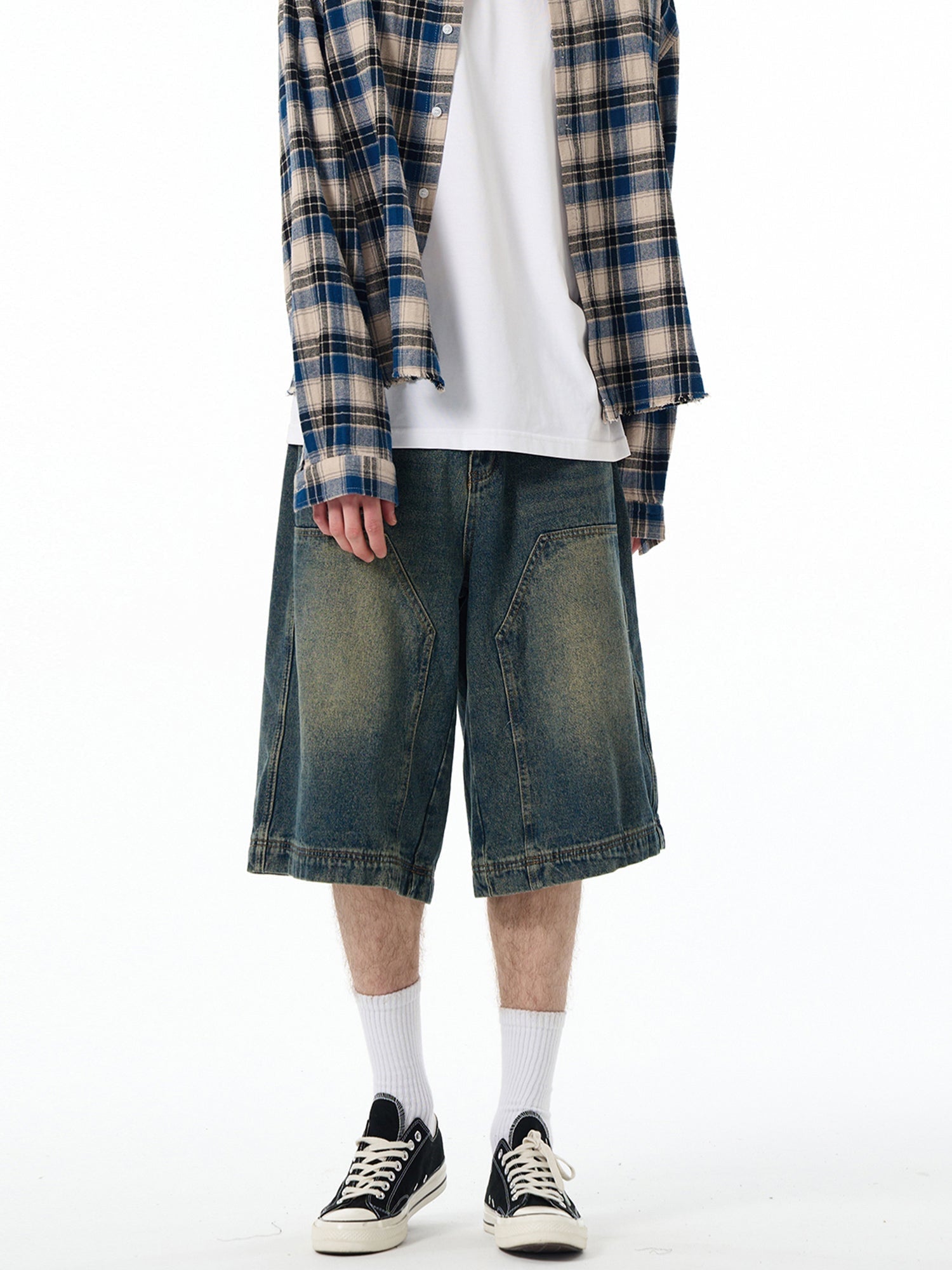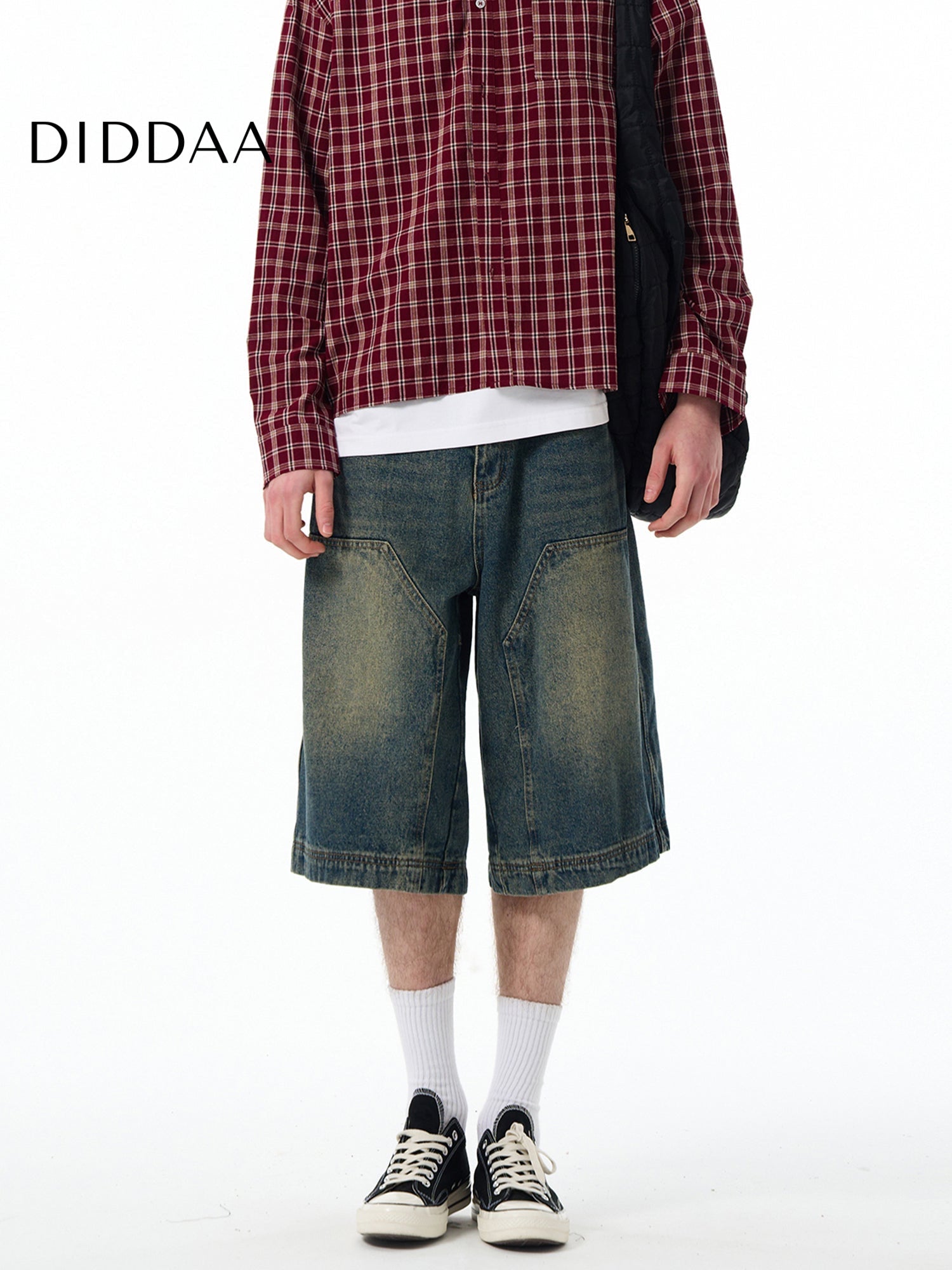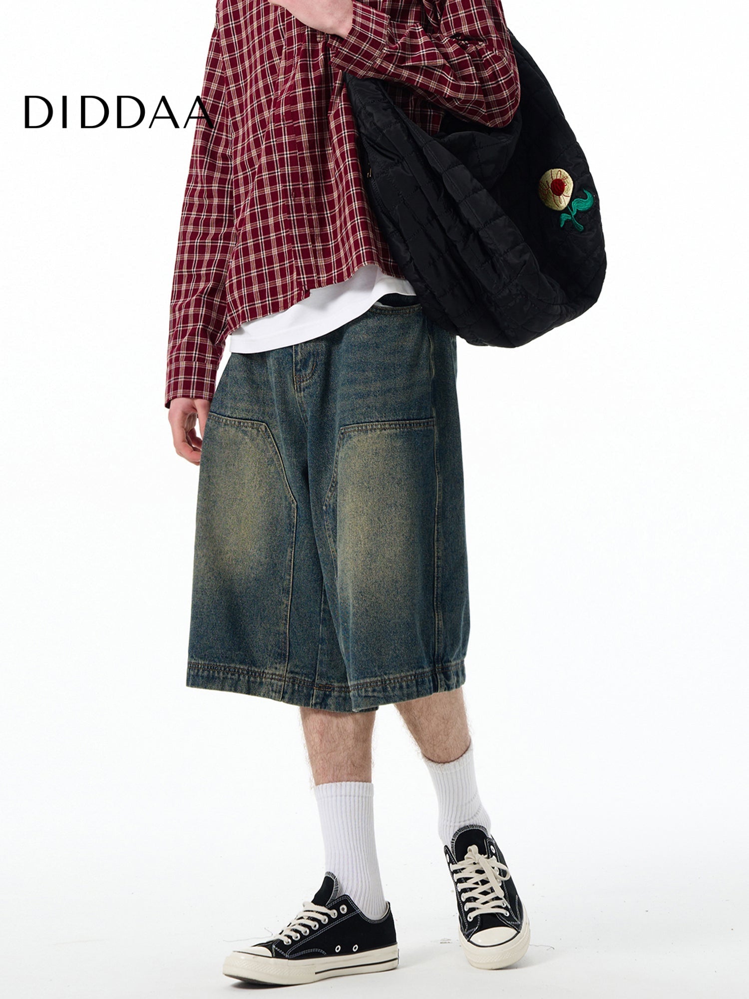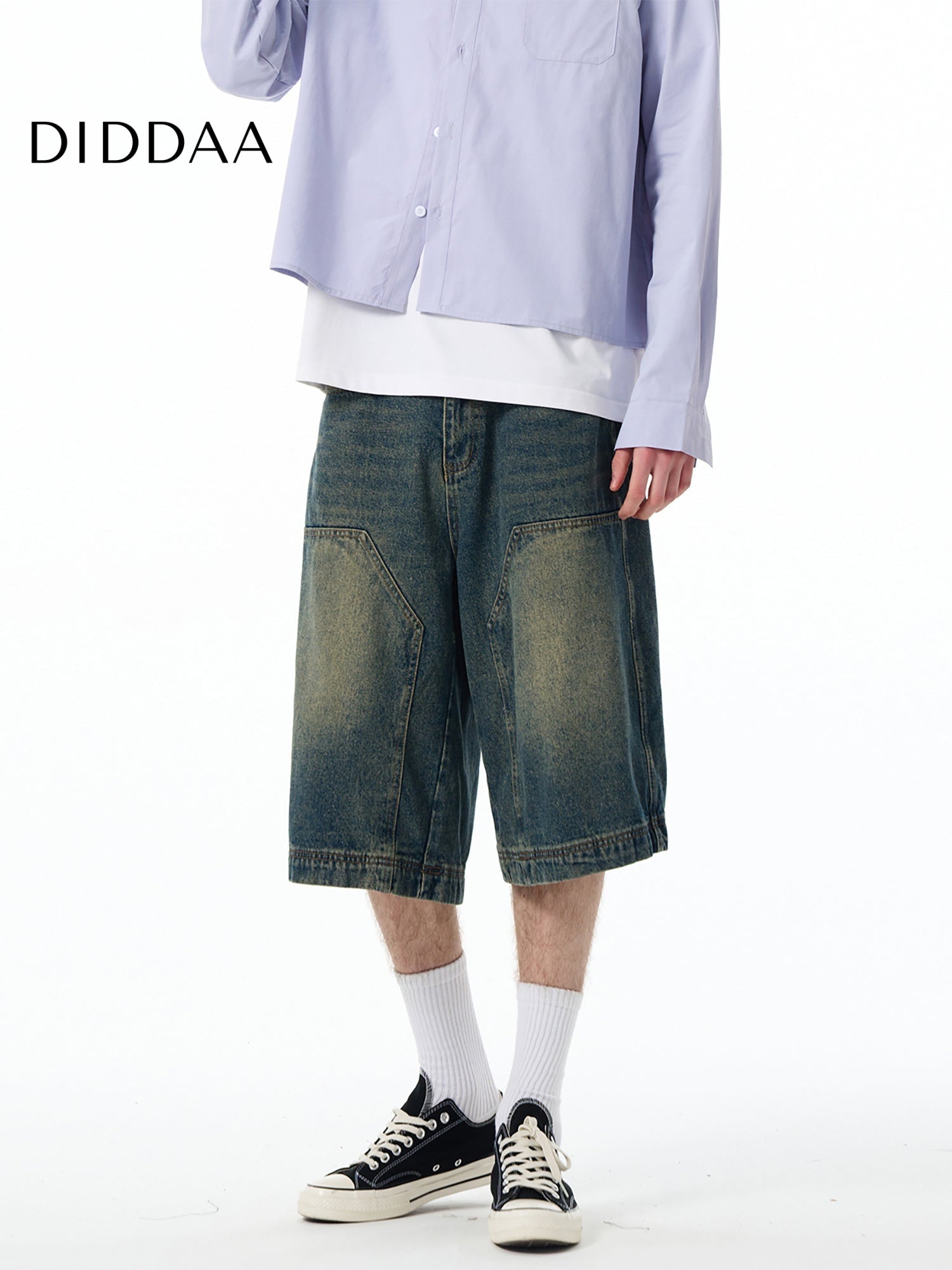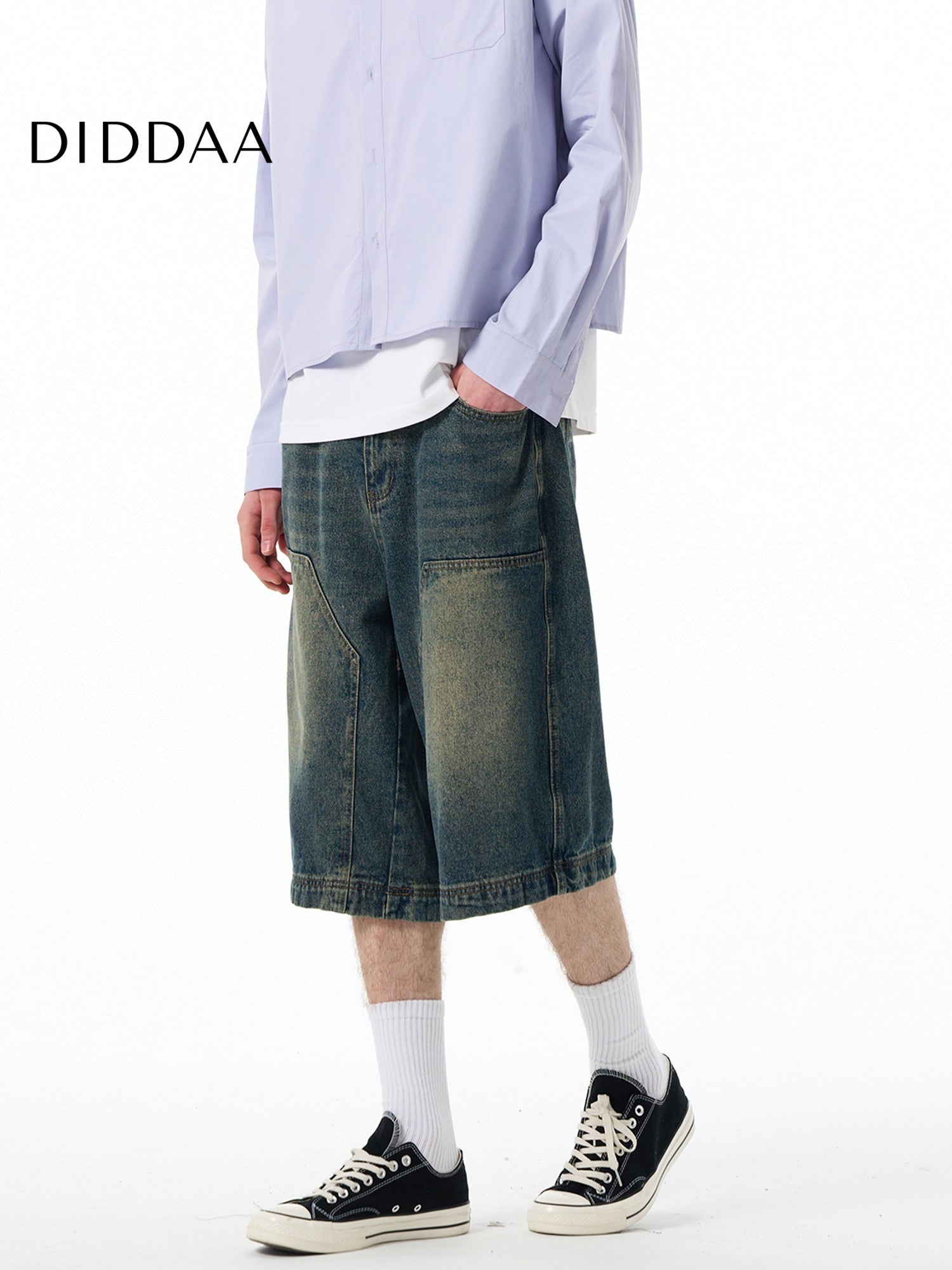 MADWITCH SUMMER NEW CARGO DENIM CROPPED PANTS MEN'S AND WOMEN'S AMERICAN TREND STRAIGHT WASH LOGGING PANTS SHORTS
