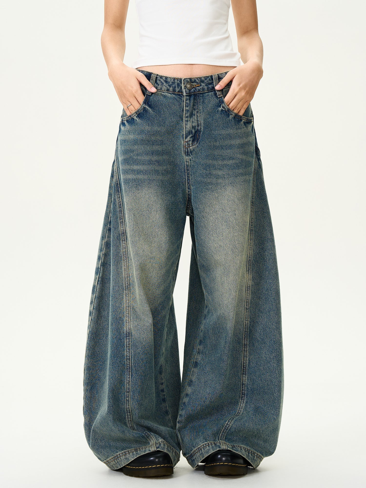 Washed Blue Distressed Wide Leg Jeans for Men and Women