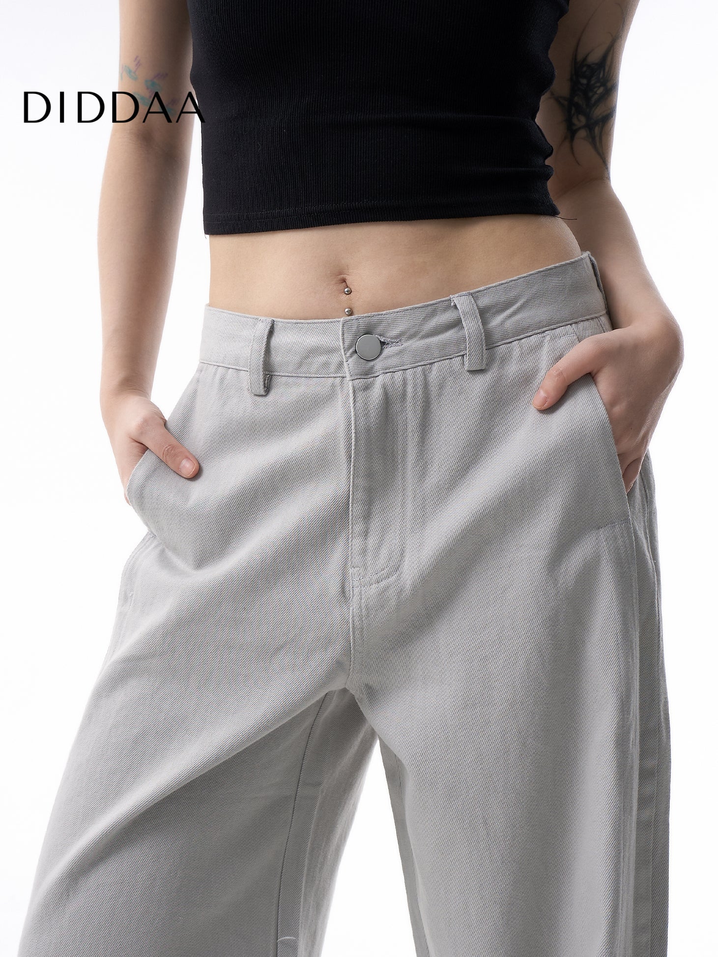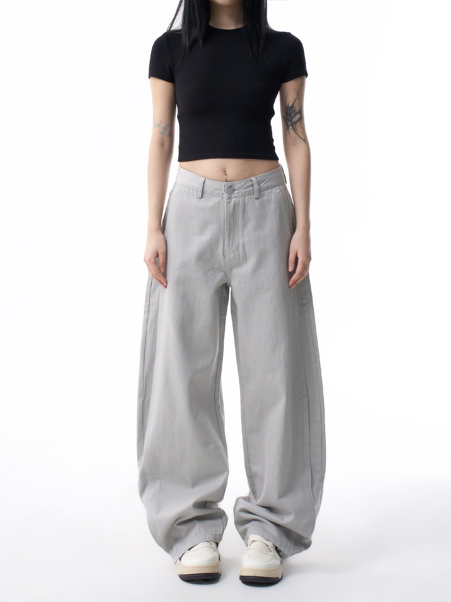 Morandi Gray High Waist Straight Leg Jeans for Women