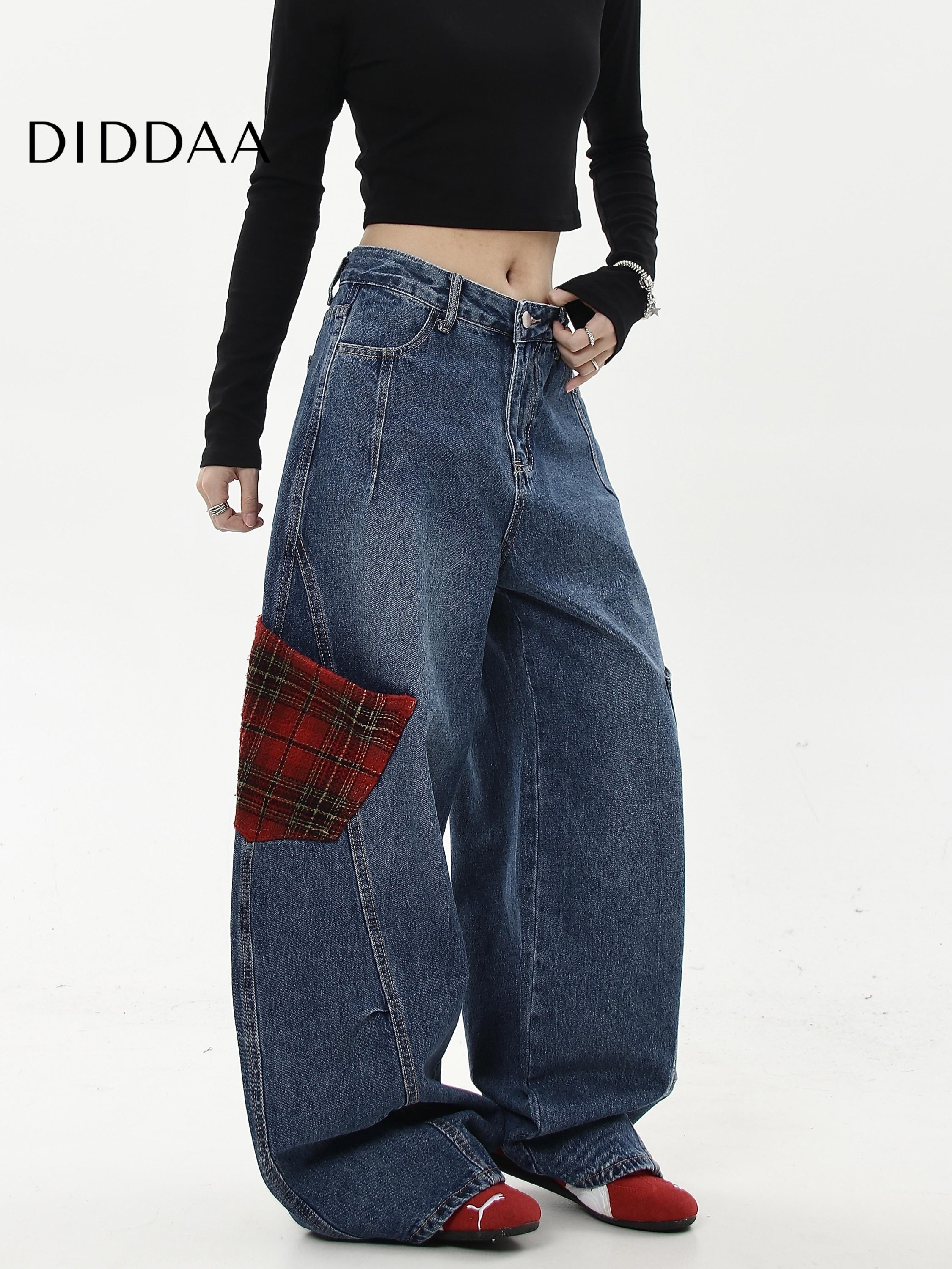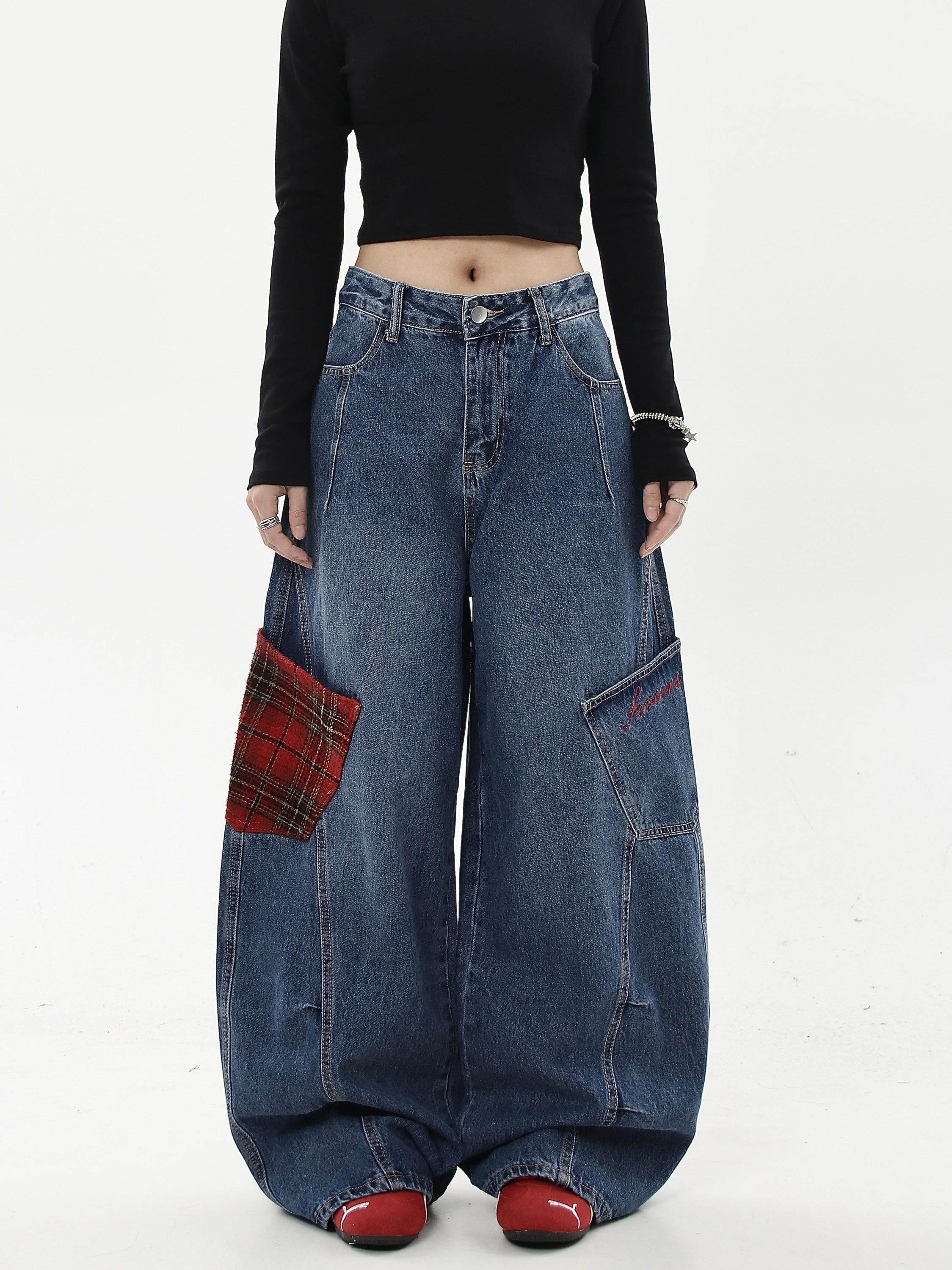 Multicolor Contrast Plaid Wide-Legged Cargo Pants
