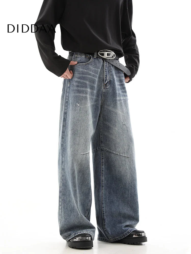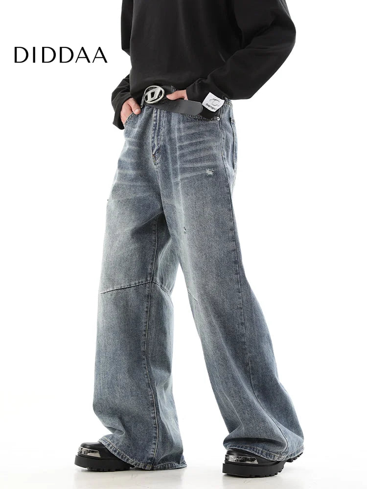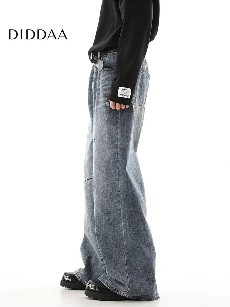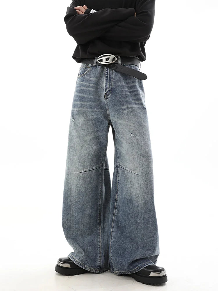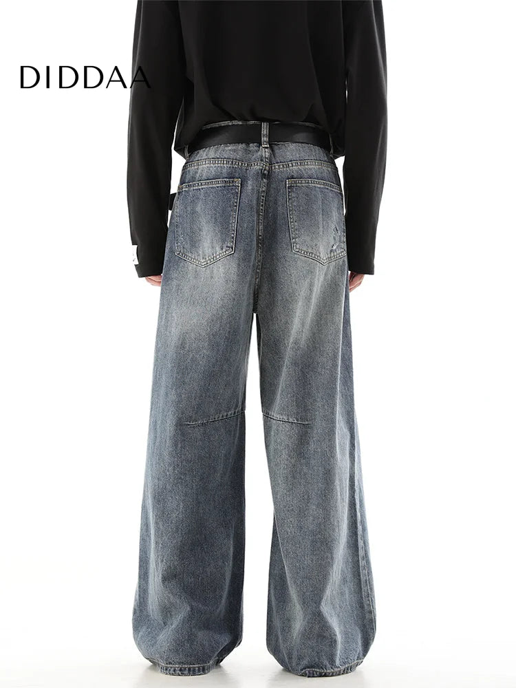 Retro Blue Loose Drape Wide Leg Jeans for Men