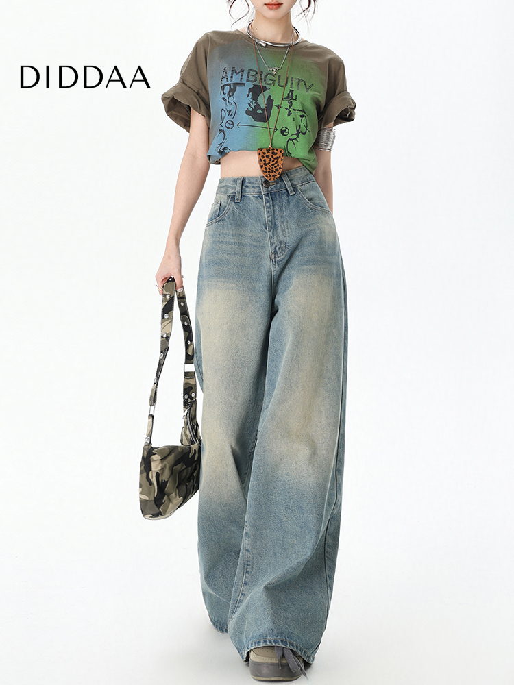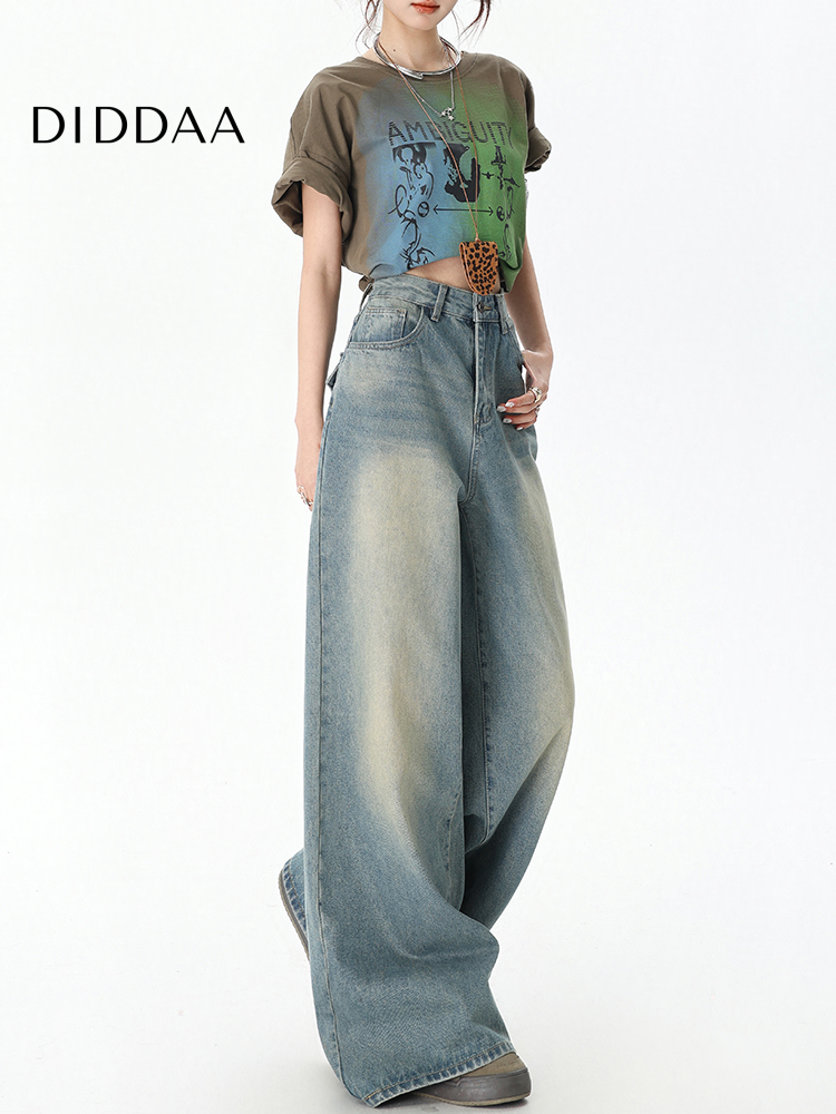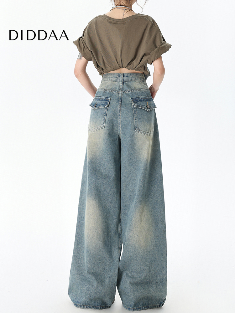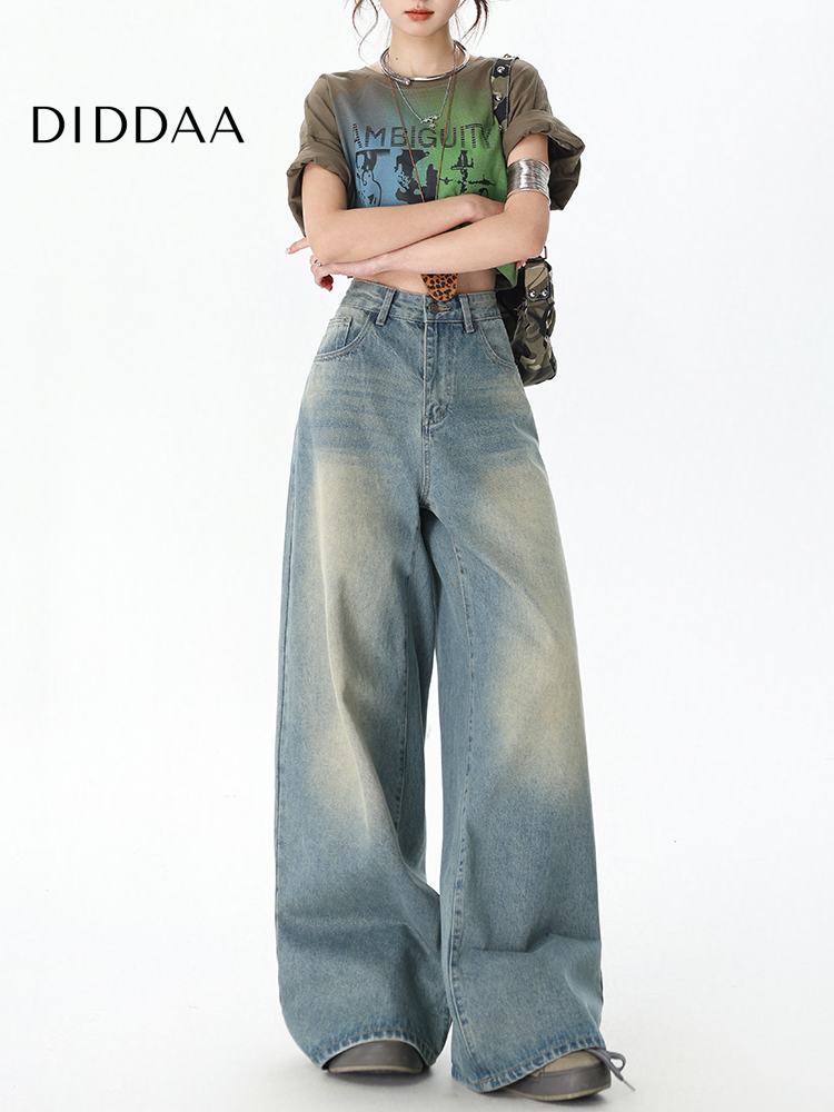 Retro Blue Loose Fit Straight Leg Jeans for Women