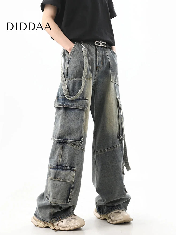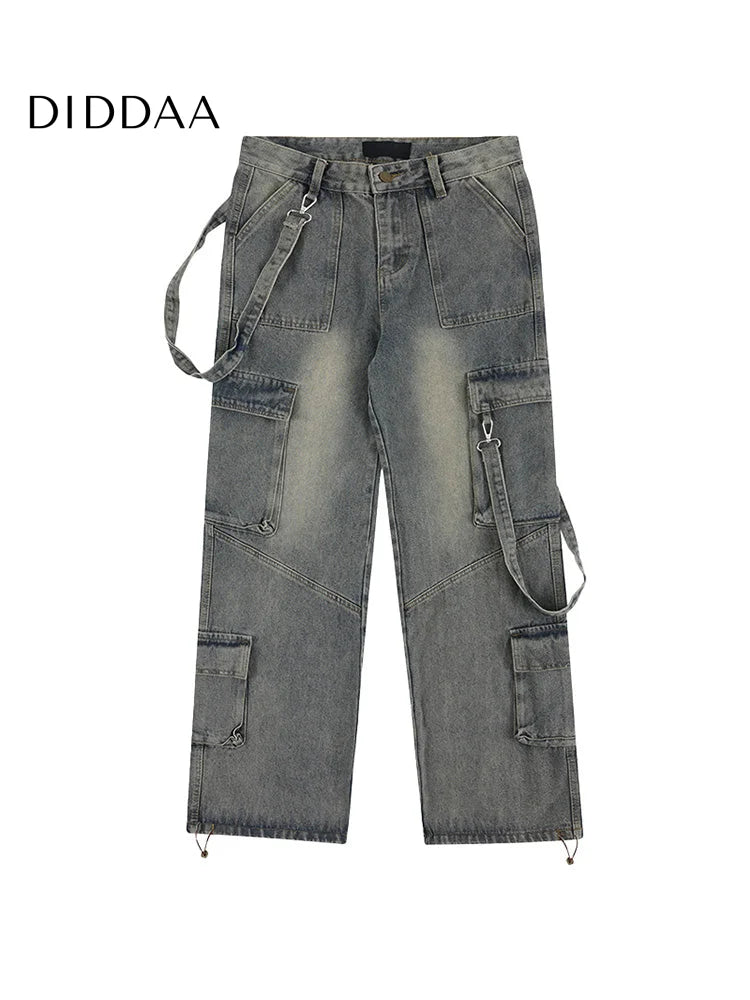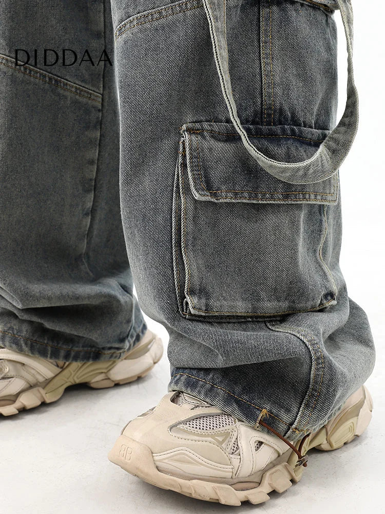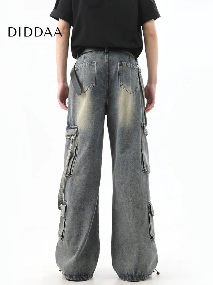 Light Blue Distressed Multi-Pocket Cargo Jeans