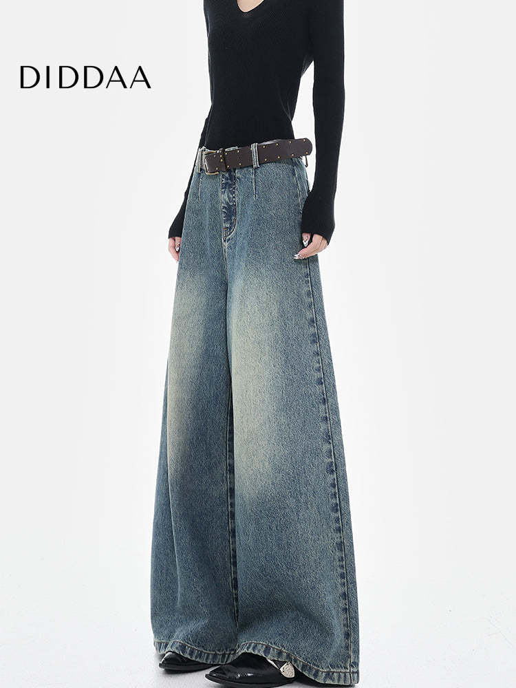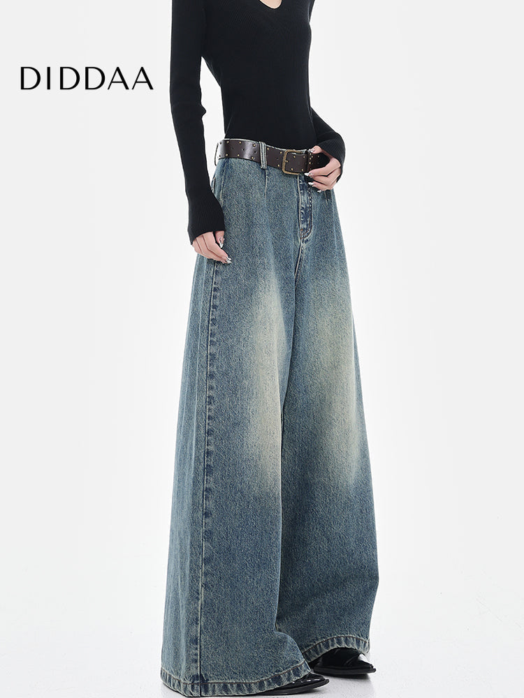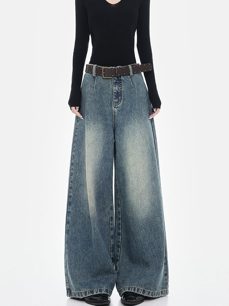 Vintage Blue Loose Fit Wide-Leg Jeans for Women