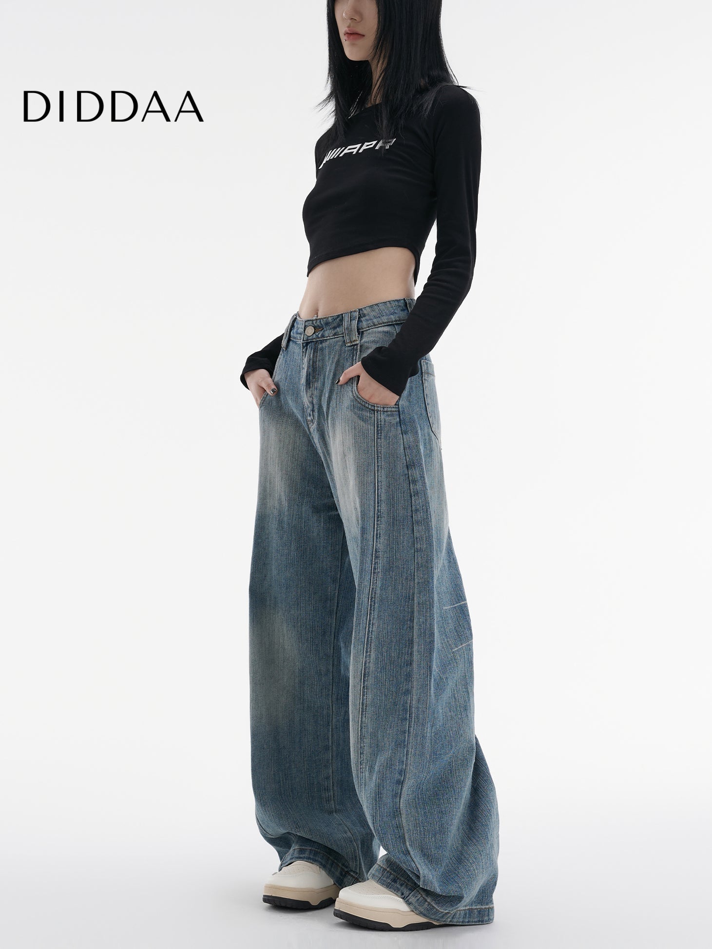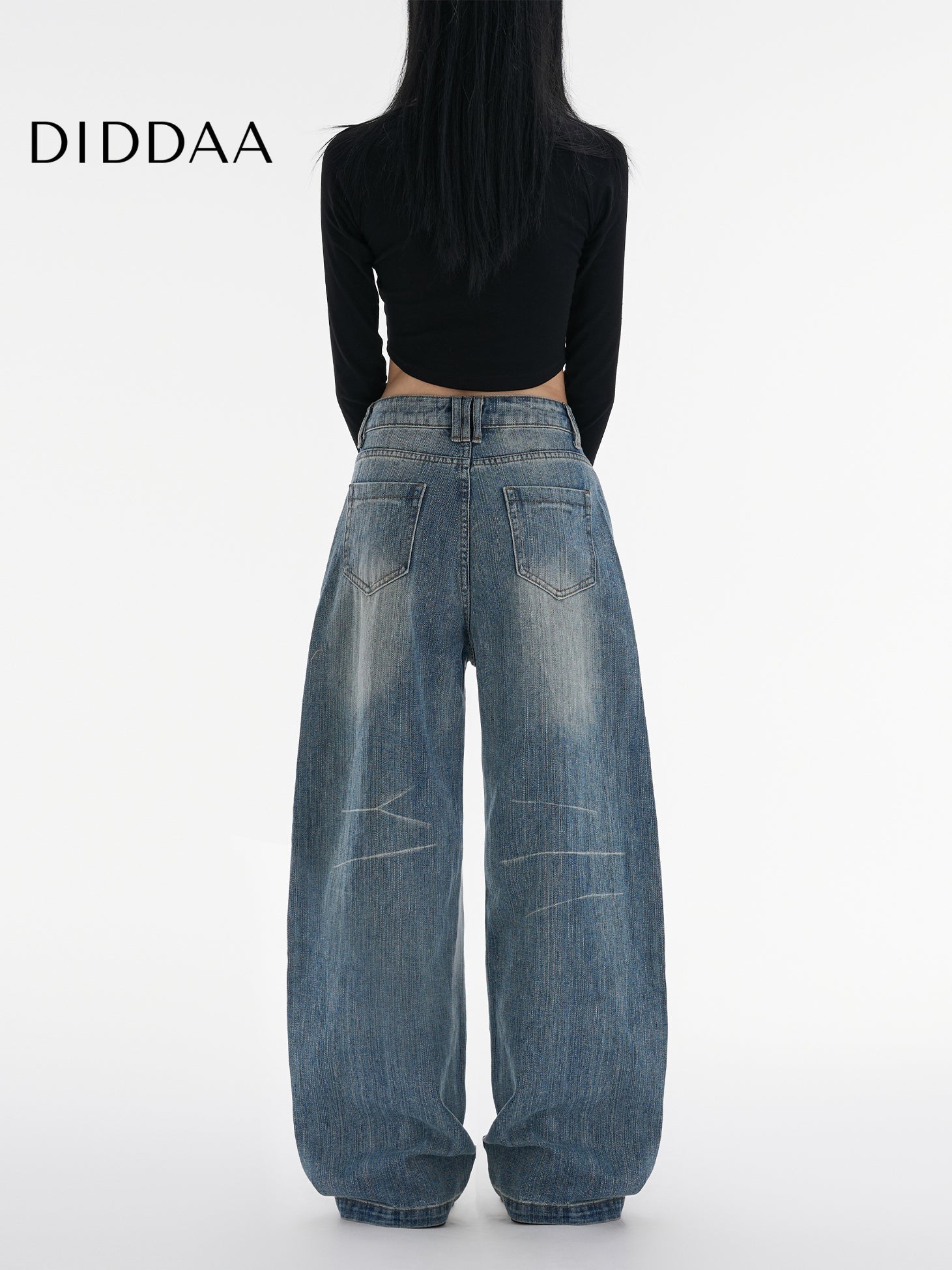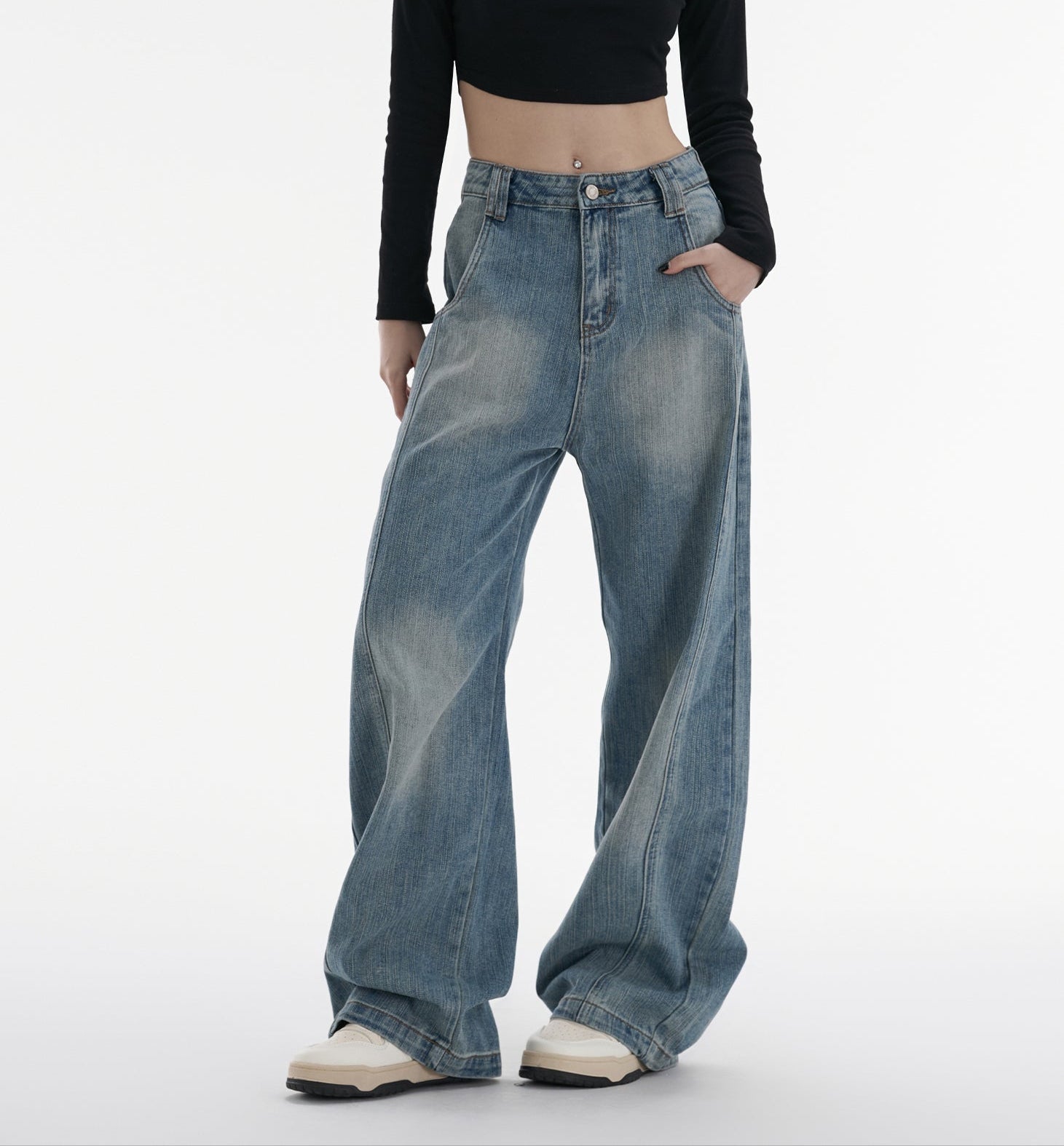 Washed Blue Loose Machete Wide-Leg Jeans for Women