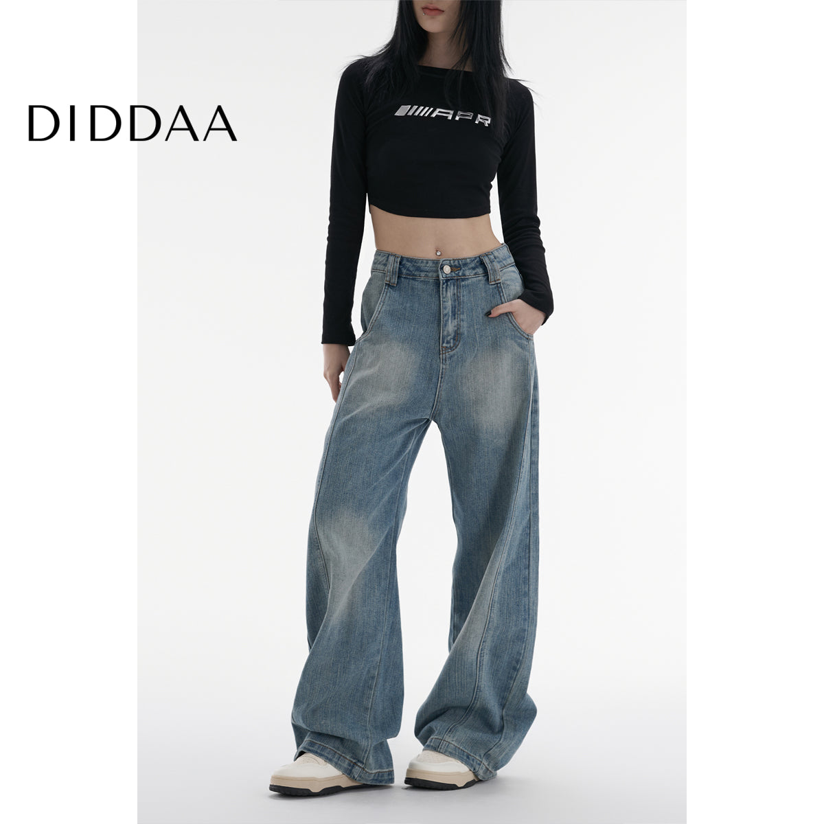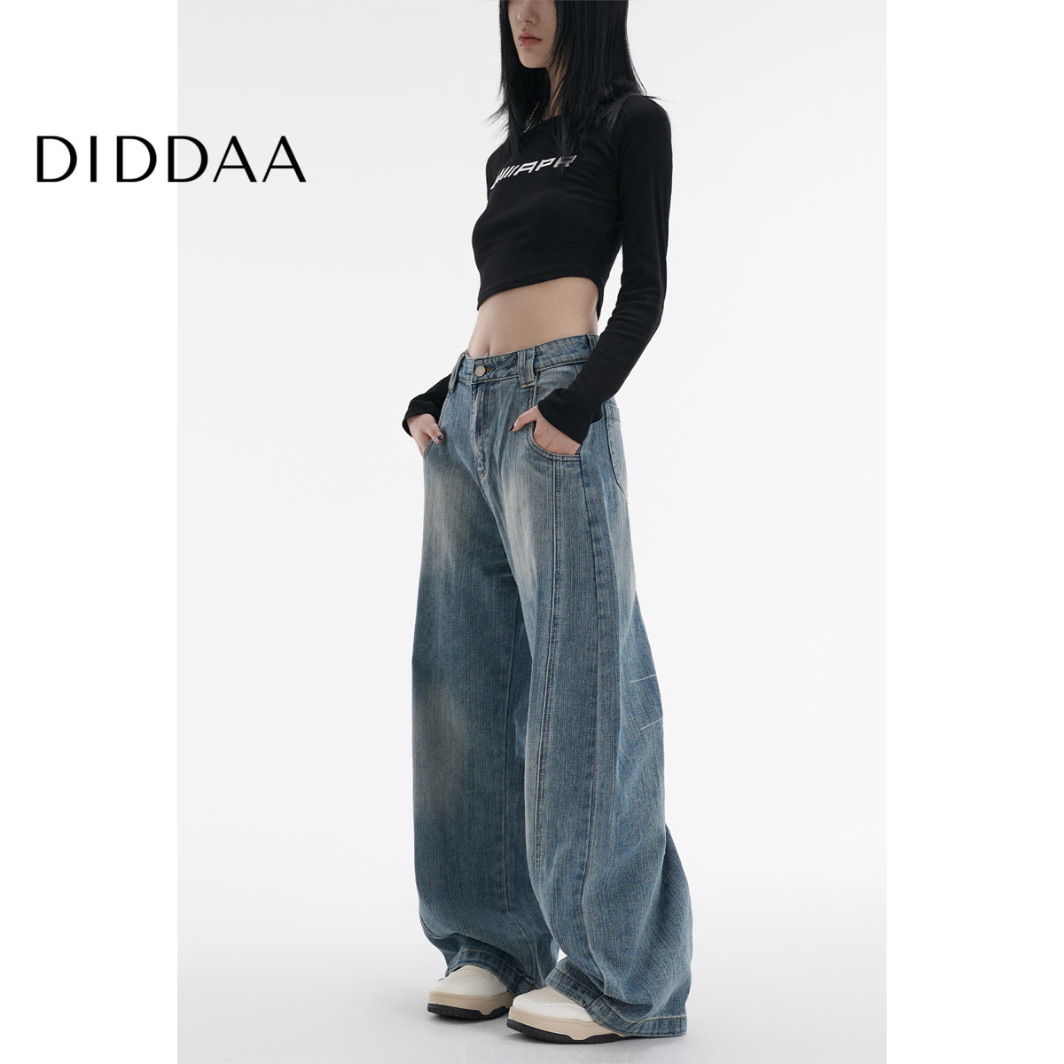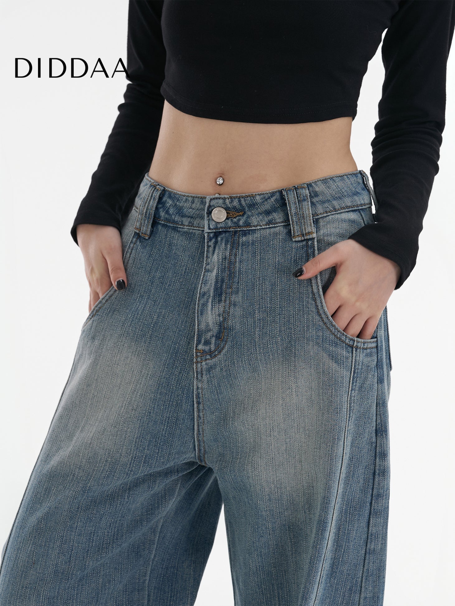 Washed Blue Loose Machete Wide-Leg Jeans for Women