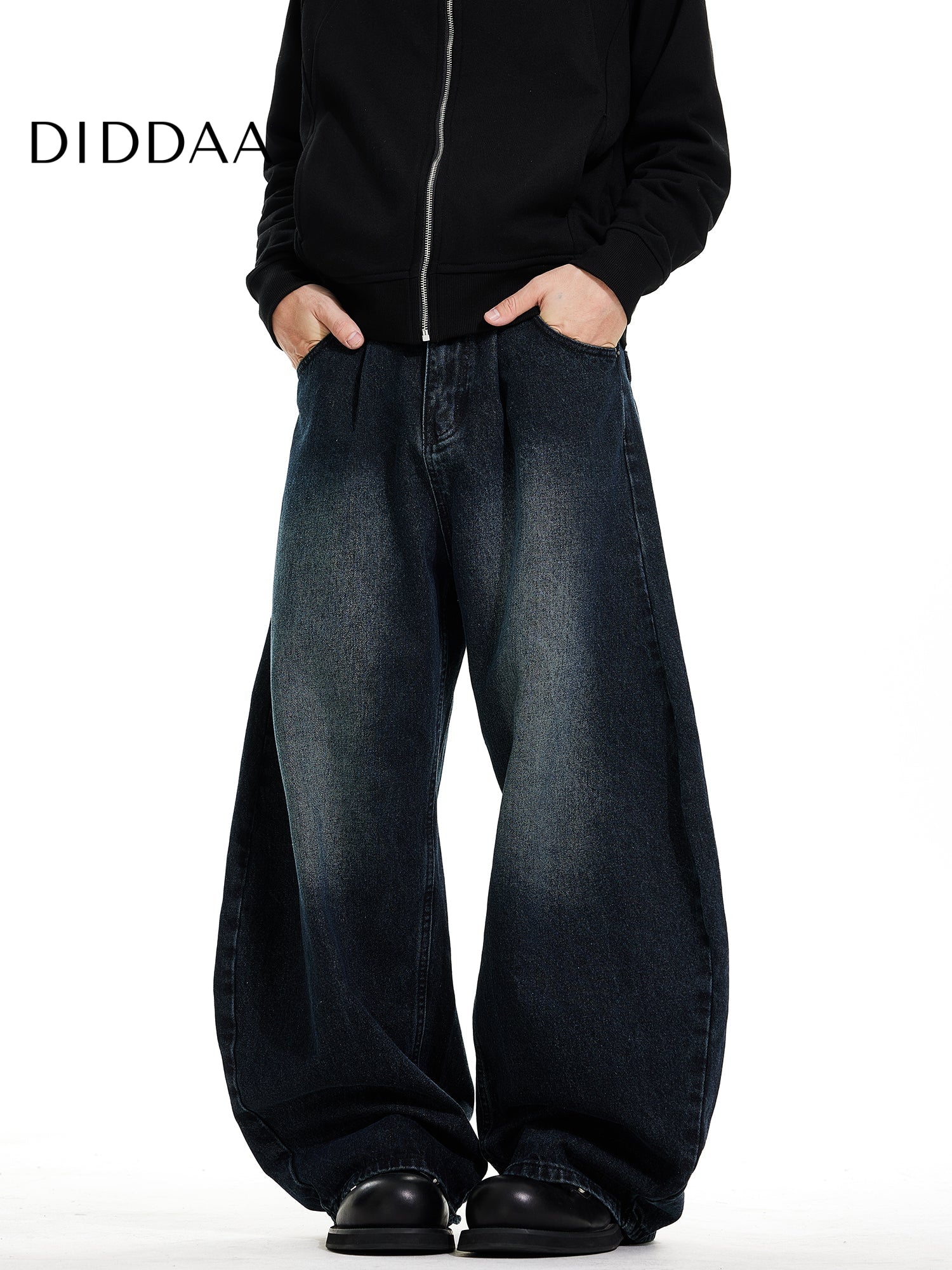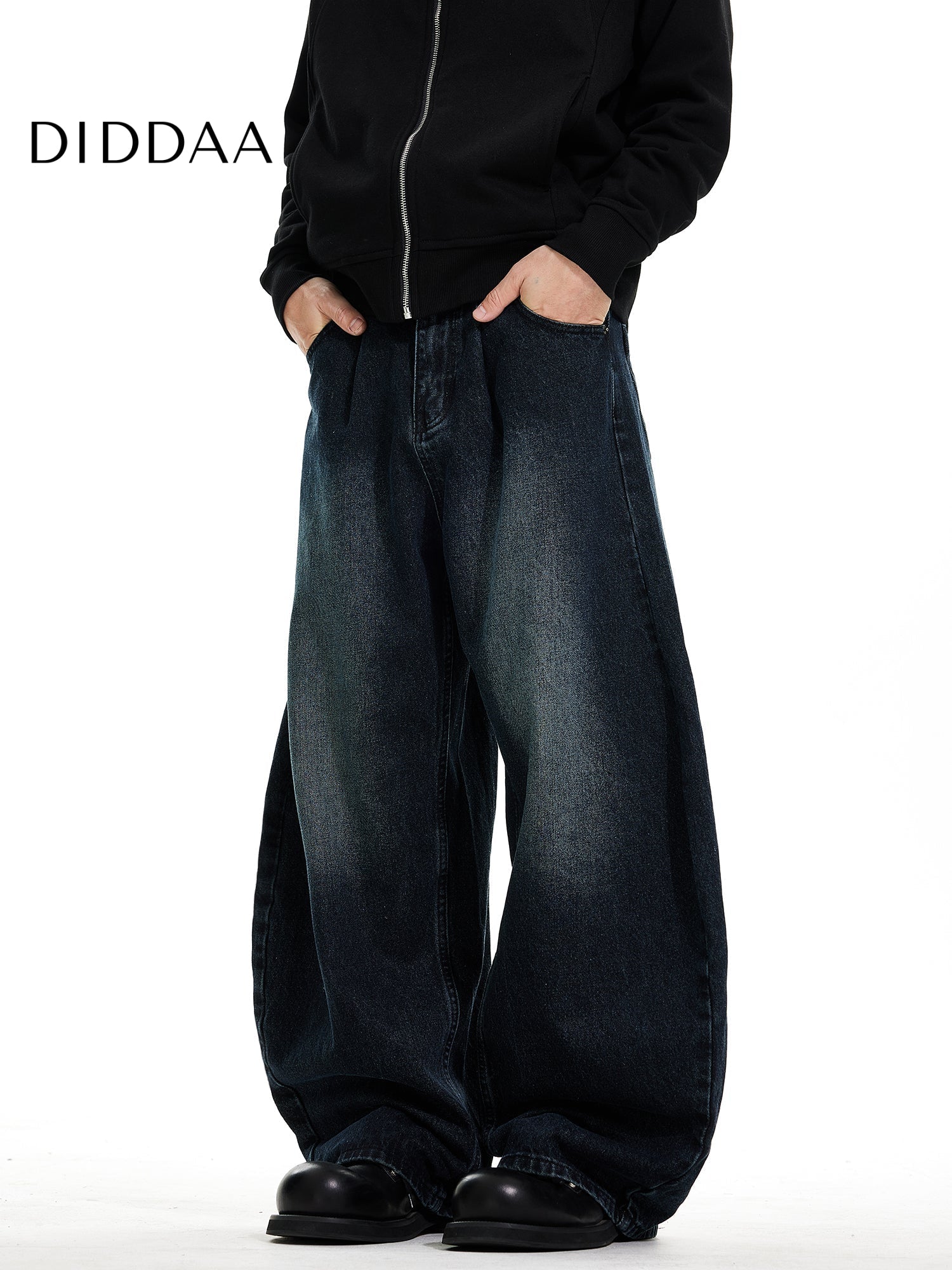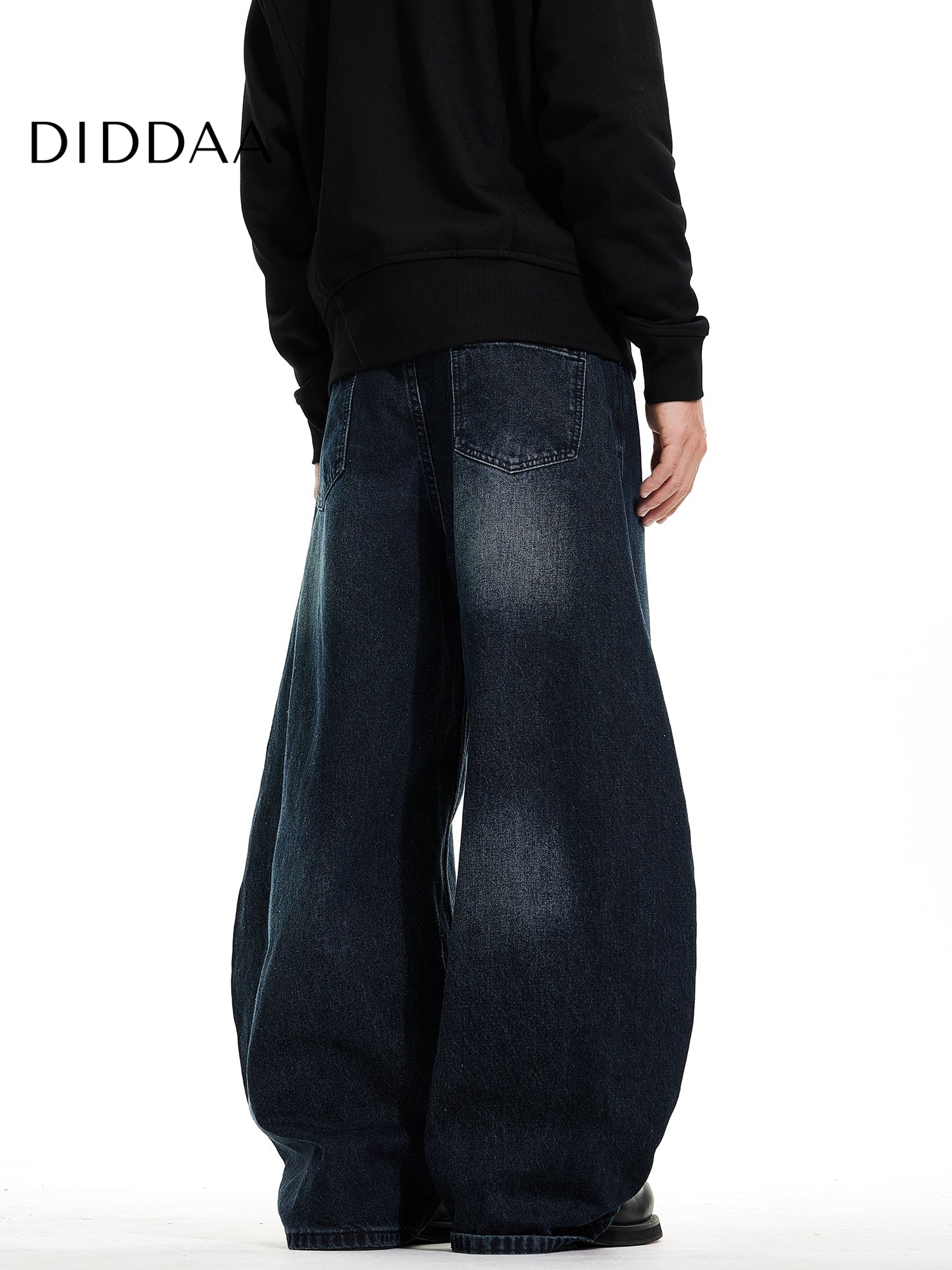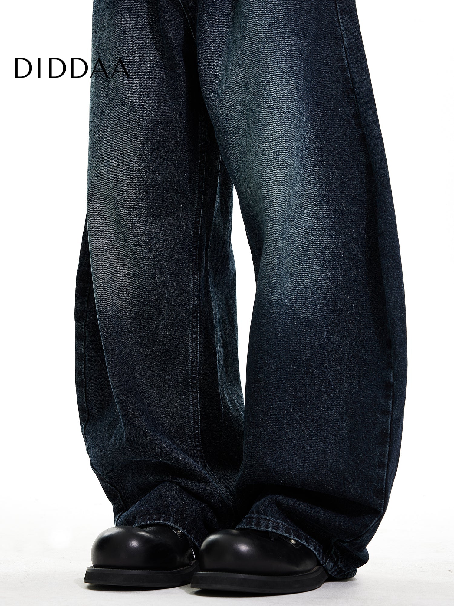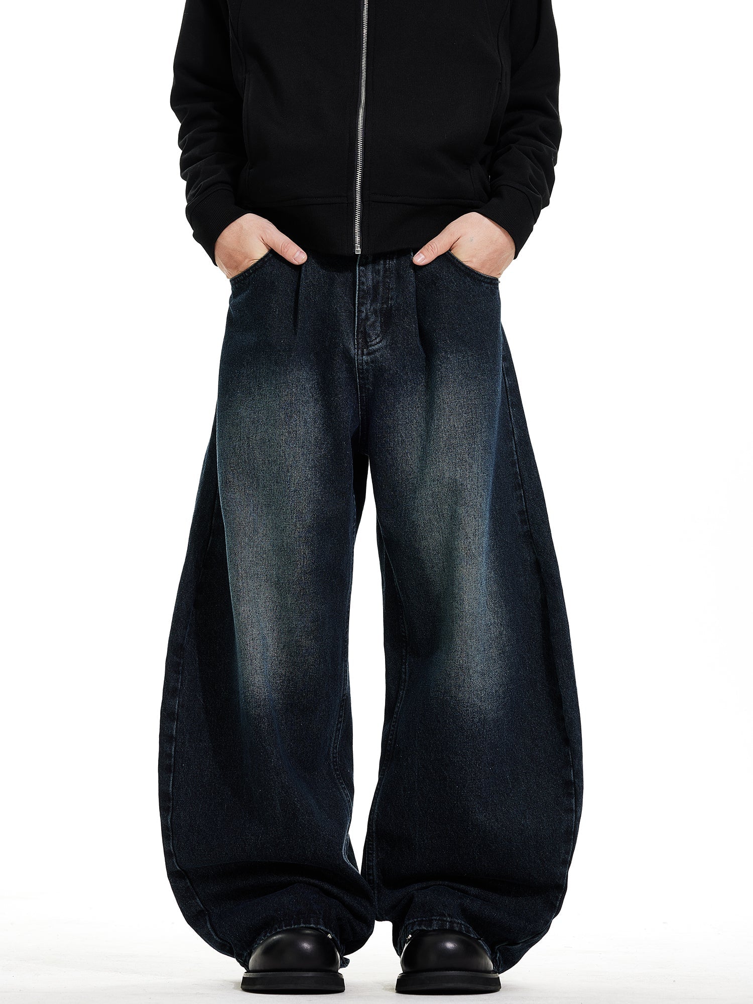 Washed Blue Three-Dimensional Curved Knife Jeans