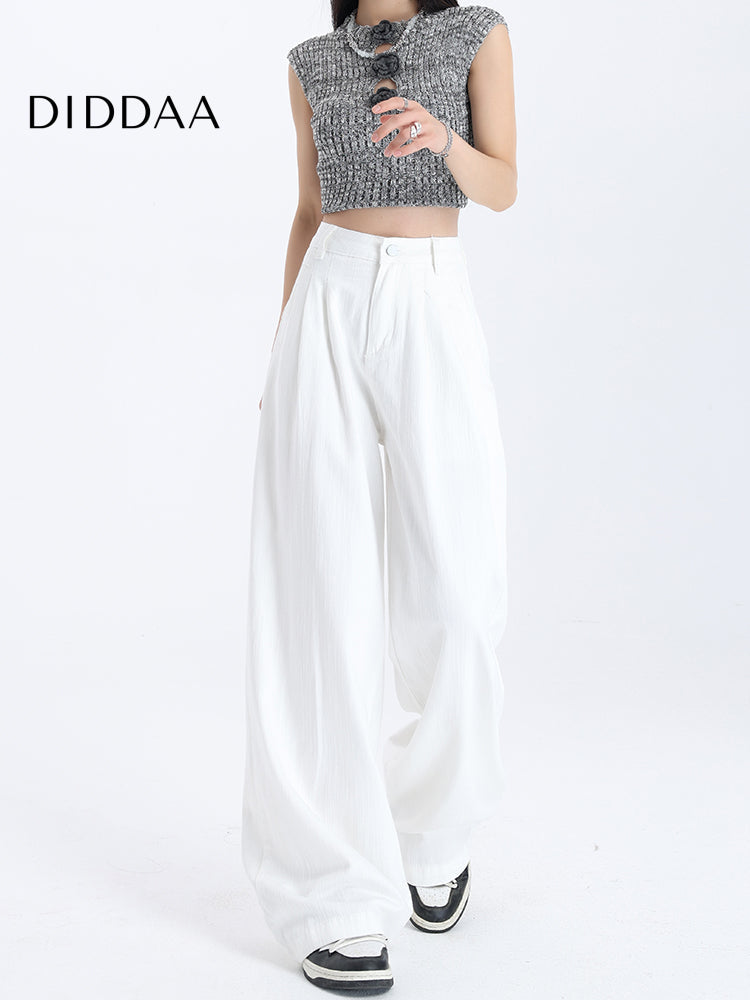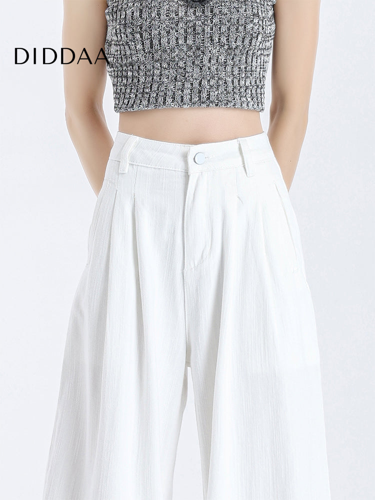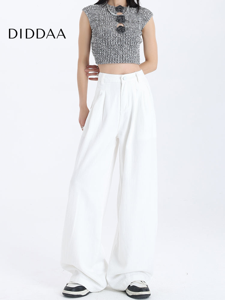 White High-Waisted Draped Wide-Leg Jeans