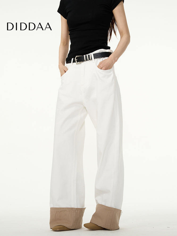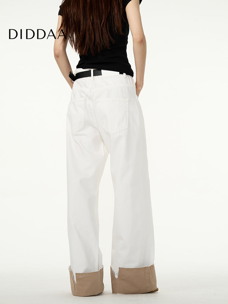 White Loose Straight-Leg Wide-Leg Couple Pants