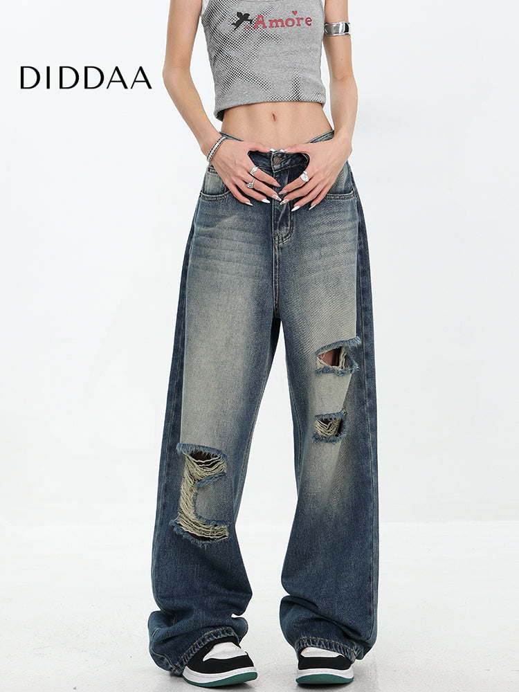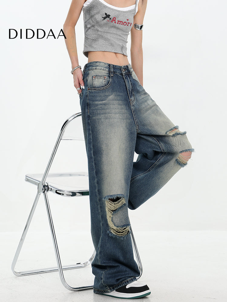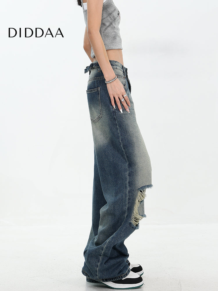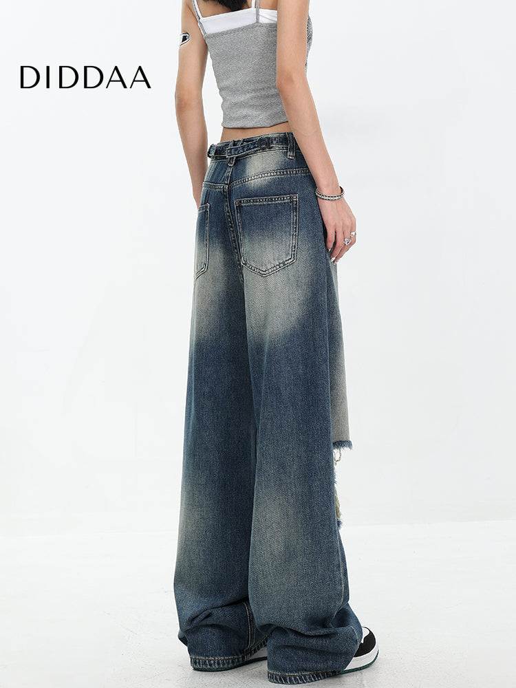 White Ripped Wide-Leg Jeans with Versatile Draping