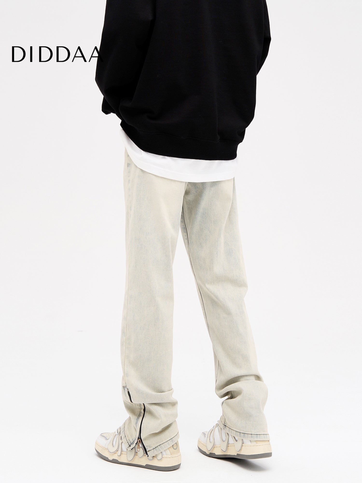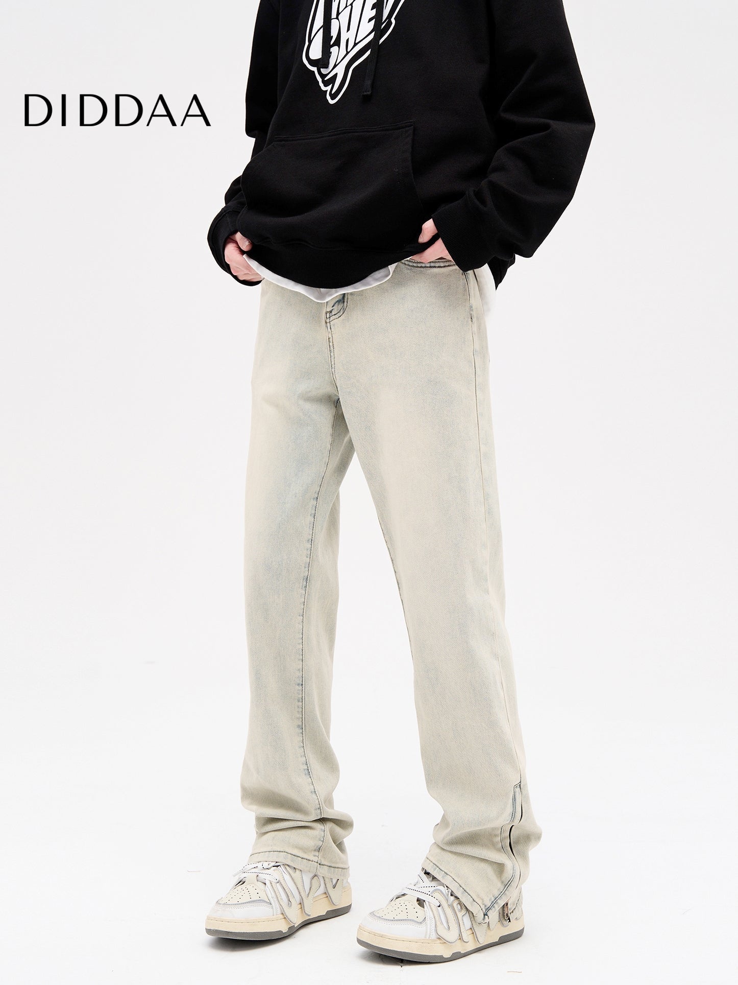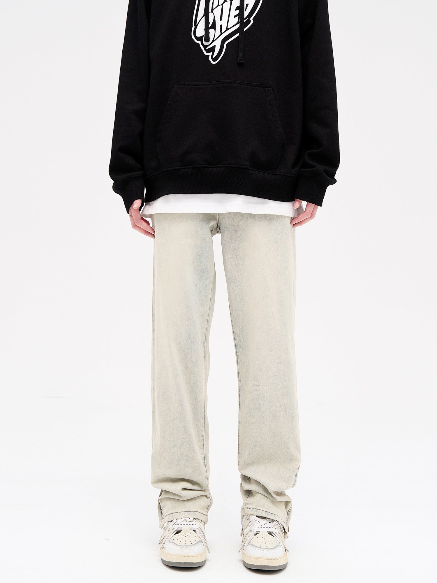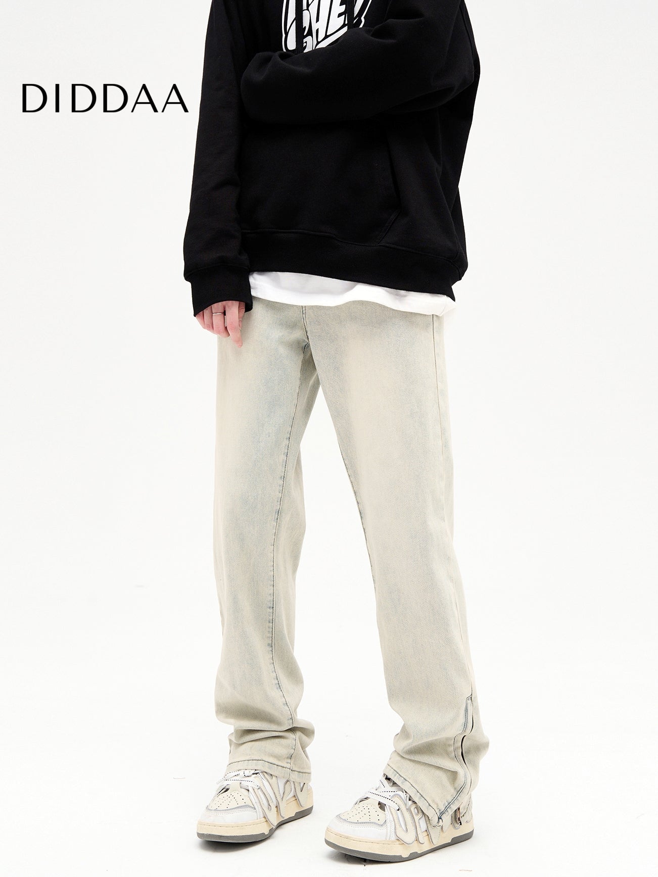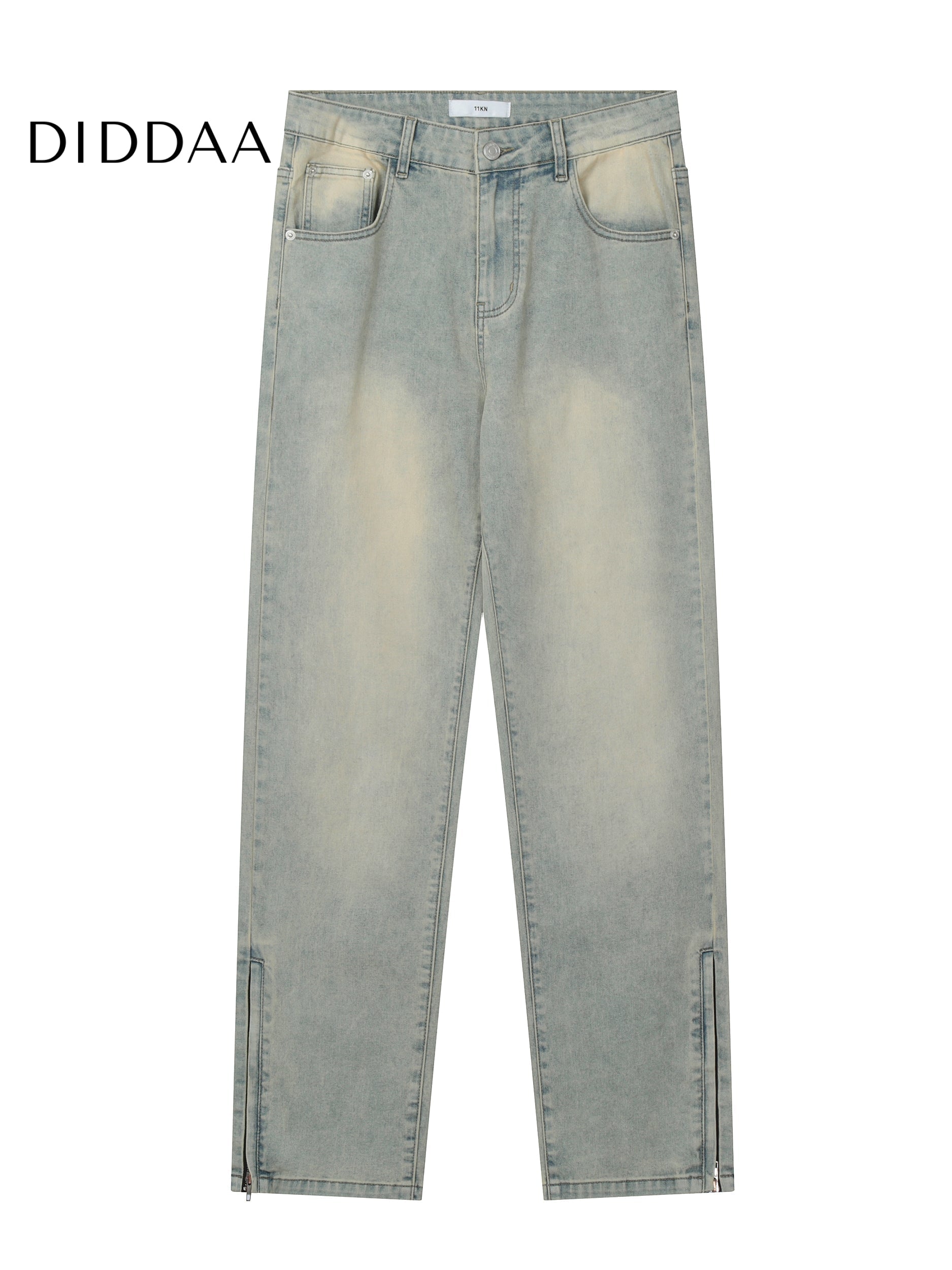 Yellow Distressed Mud Dyed Zippered Slit Jeans