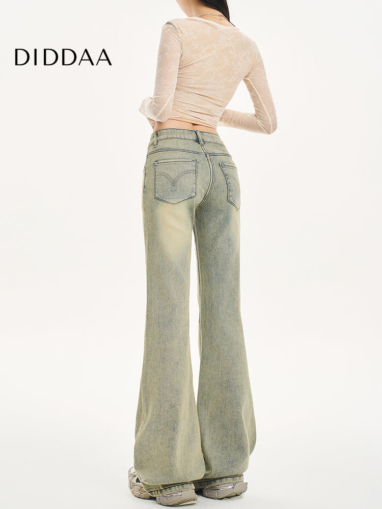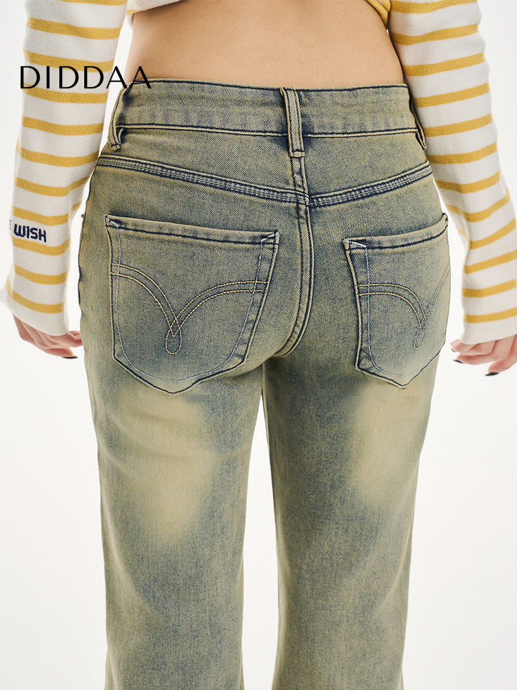 Yellow Loose Retro Flared Velvet Jeans 2025 Women’s Spring